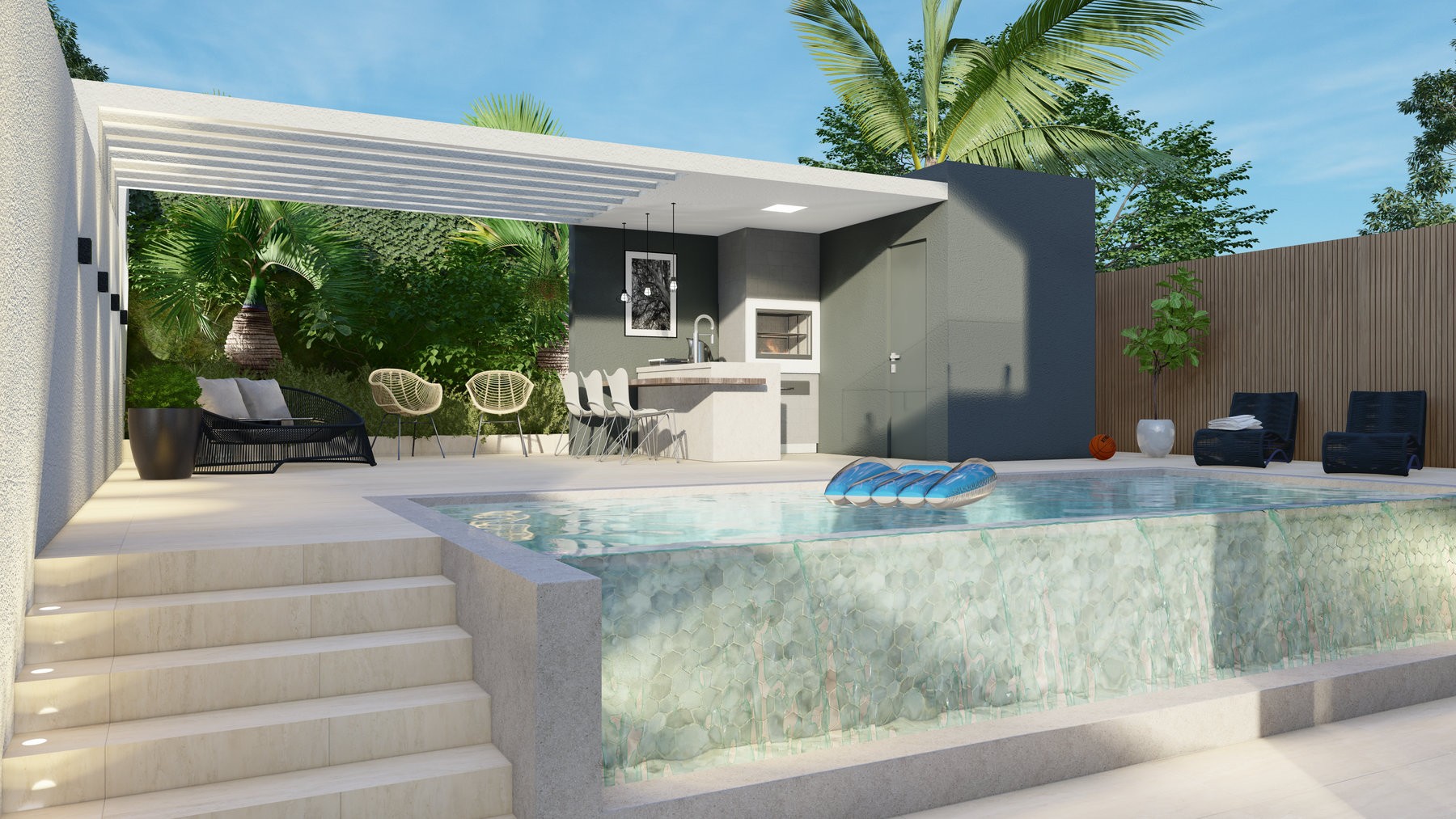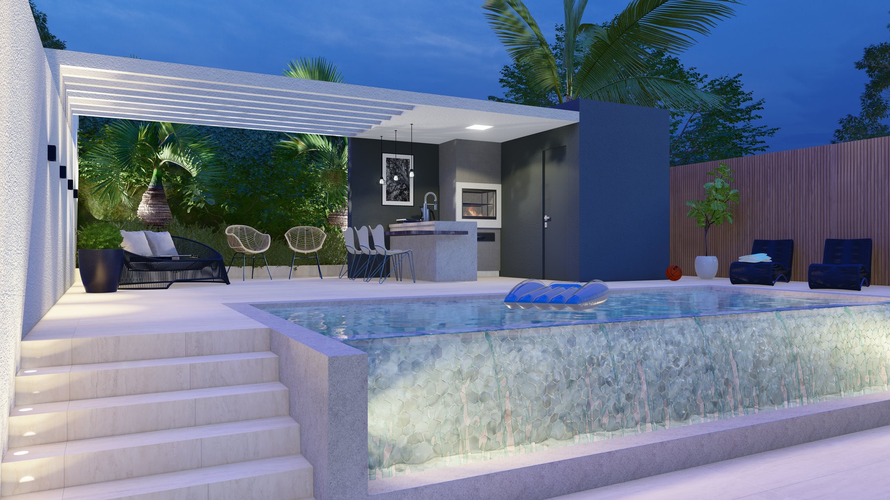Cada platô tem sua função bem definida: as áreas sociais se expandem em um nível privilegiado, onde a vista e a conexão com a paisagem se tornam protagonistas. Já os espaços íntimos, situados em níveis estratégicos, garantem privacidade e conforto sem perder a relação com o entorno. Grandes aberturas e materiais naturais, como madeira e pedra, reforçam a harmonia entre a construção e o meio ambiente.
