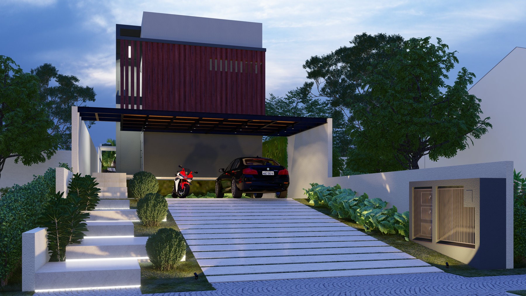Cada terreno conta uma história antes mesmo de ser construído. No caso desta residência, a topografia acentuada não foi um obstáculo, mas a premissa essencial para sua concepção. Em vez de nivelar a terra e impor uma estrutura artificial ao solo, o projeto abraçou sua natureza e criou platôs, transformando a geografia em parte integrante da arquitetura.