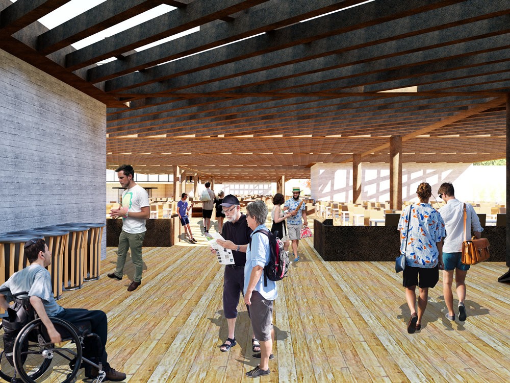 A transparência do vidro, um dos elementos-chave do projeto, permite que a luz natural invada os espaços, criando ambientes vibrantes e convidativos. As esquadrias desenham perspectivas ousadas, enquadrando a paisagem urbana e reforçando a conexão entre o interior e o exterior. Estruturas metálicas robustas garantem imponência e leveza simultaneamente, enquanto a tenda tensionada, um dos ícones do complexo, se destaca como um elemento arquitetônico de proteção e fluidez, conferindo um caráter inovador e escultural ao conjunto.