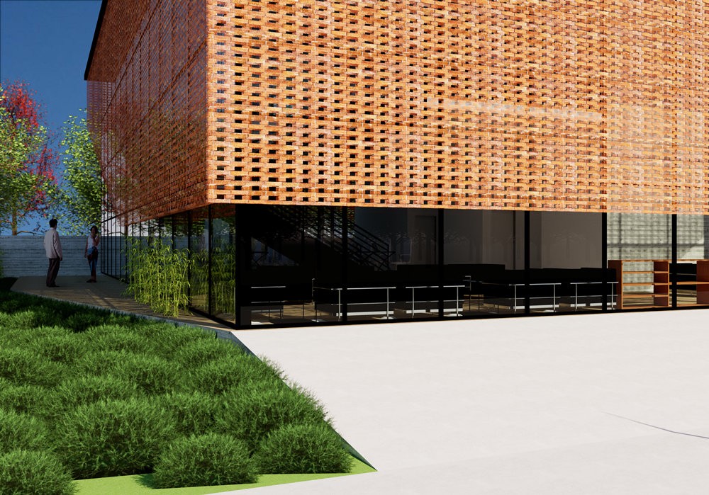O uso do tijolinho como elemento protagonista não é apenas uma escolha estética, mas uma estratégia climática e simbólica. Aplicado em uma composição que funciona como uma cortina de proteção solar, ele filtra a luz, reduzindo o impacto térmico e criando um jogo de sombras dinâmico ao longo do dia. Essa solução vernacular revisitada traduz uma arquitetura de raízes sólidas, conectada ao contexto local, enquanto imprime ao edifício um caráter contemporâneo e inovador.